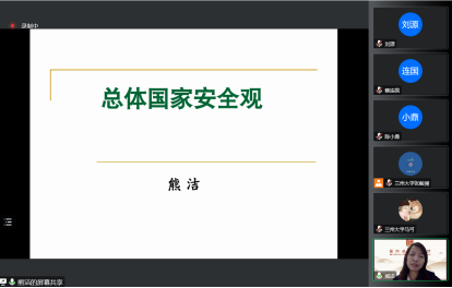 此次讲座主要包括三个方面内容,即国家安全观在中国的演进、总体国家安全观的内容以及熊洁老师在上述方面进行研究学习之后的启发分享。