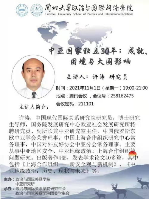Lecture Notice: 30 Years of Independence in Central Asia: Achievements, Difficulties and Influence of Great Powers by Xu Tao